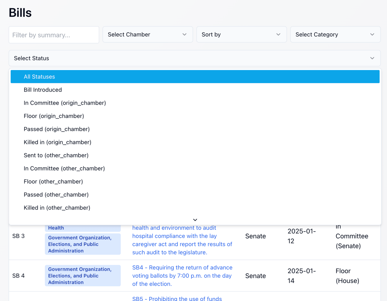 For the remainder of the 2025 session, Topeka Buzz will focus on the progress (or not) of these ~200 bills that have the potential to be sent to the Governor. We’ve added information on BillBee that displays the current status of each bill (according to what’s published on kslegislature.gov, anyway!1)